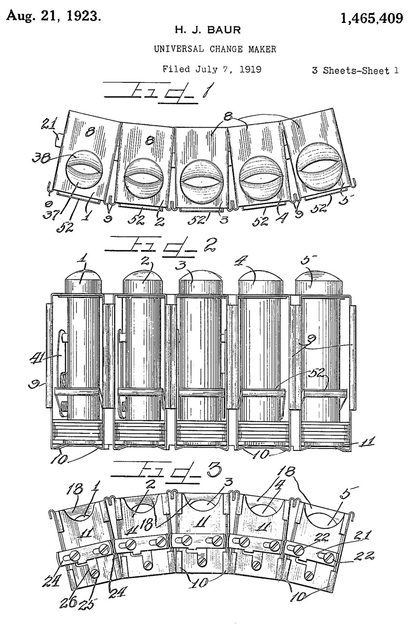 list of patents while searching for Brandt 730 bench top hand cranked Coin Counter and Packager [the 740 is a motorized unit either bench top or free standing]
