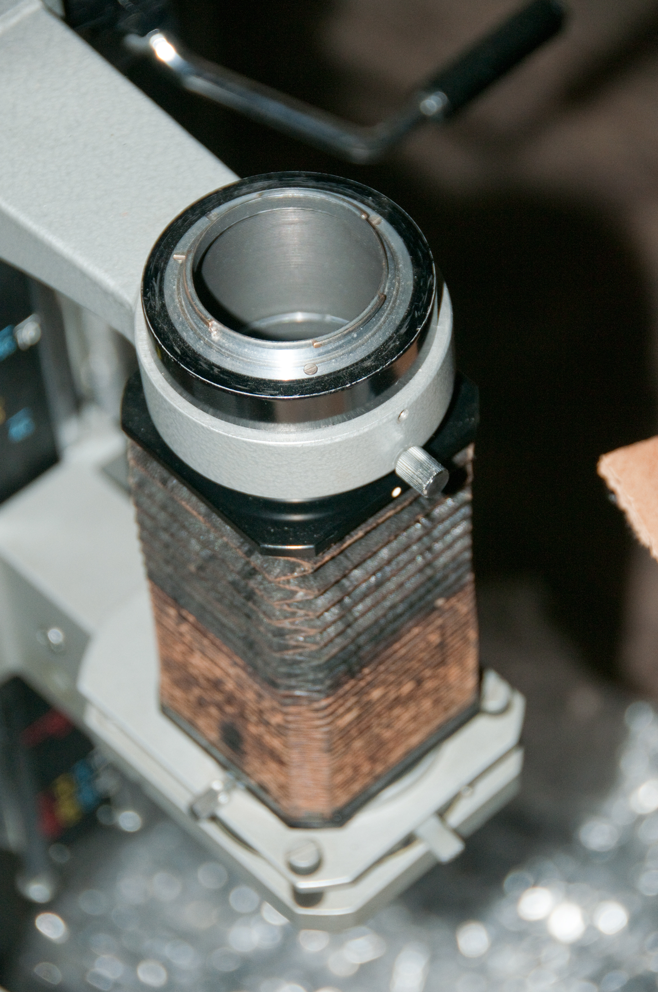 The lamp housing is missing that fits on the horizontal rail leading to the Diascopic illuminator. I need one of them.