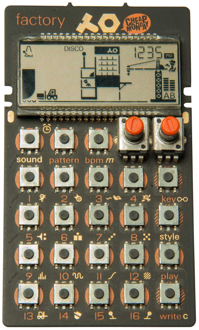 by Teenage Engineering PO-16 Factory "lead synthesizer for keys melodies. sequencer with parameter locks, play styles and punch-in effects. pocket operators are small, ultra portable music devices." - User Guide - pdf -