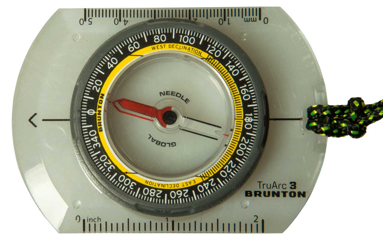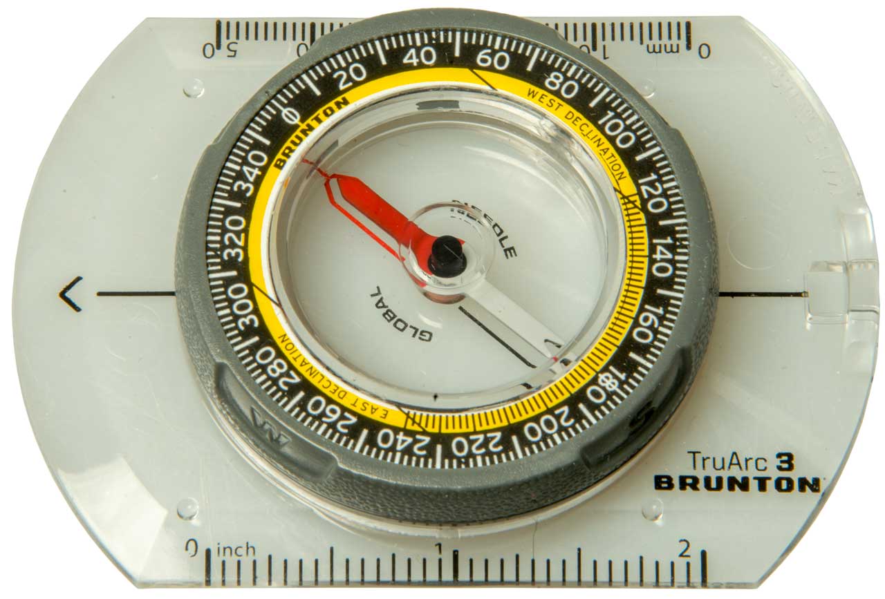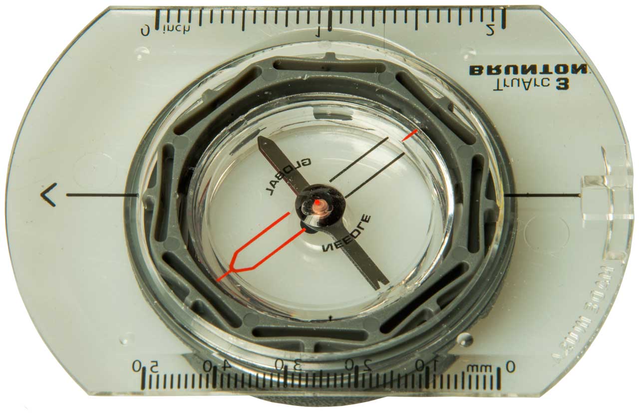 The degree dial can be rotated. One application would be to set it to the local magnetic deviation. Dial in both degrees (red) and mils (black).