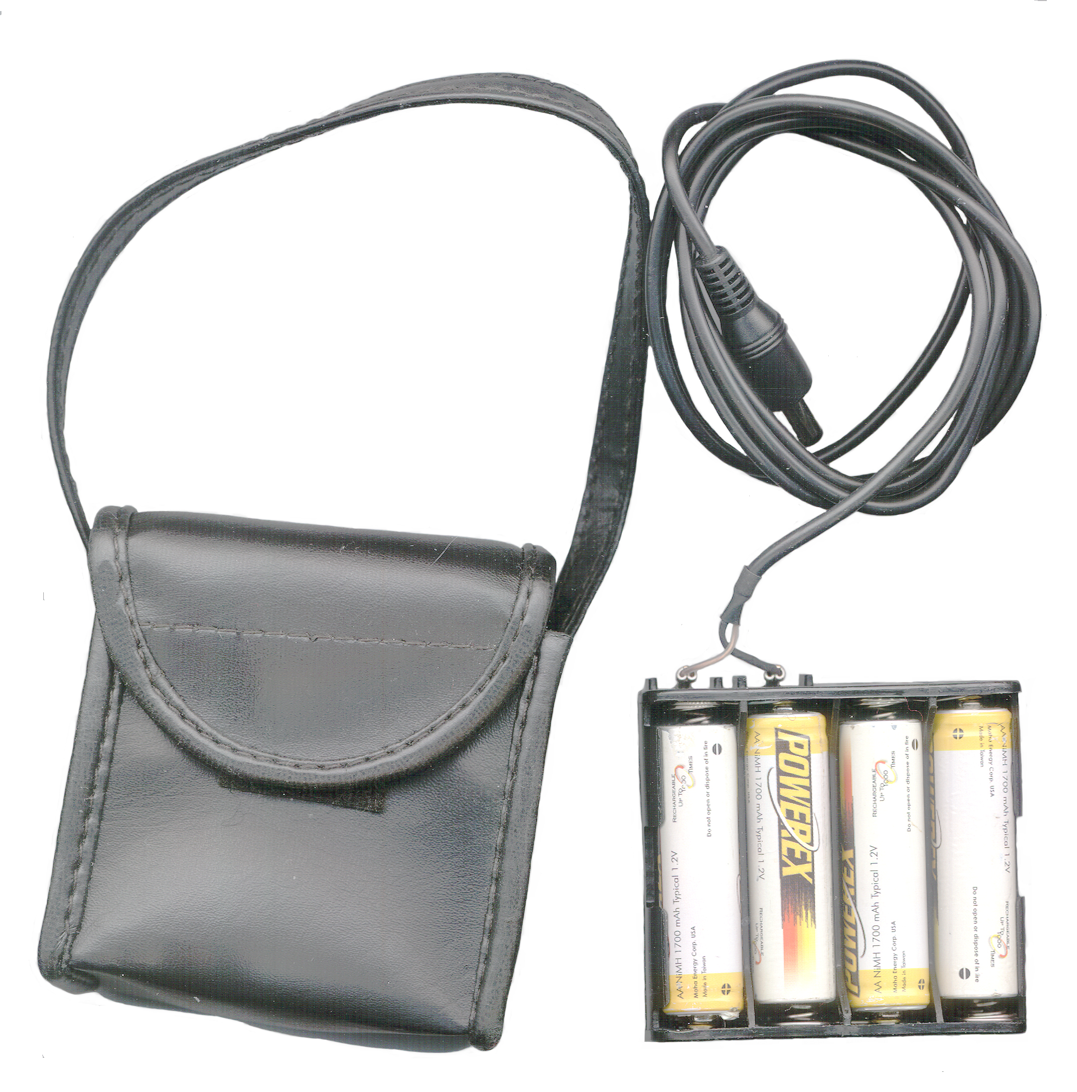 The factory supplied battery pack holds 8 each AA cells. This provides about 12 Volts for Alkaline cells and about 9.6 Volts for rechargable Ni-Cad or Ni-MH cells. But the amp hour capacity is only good for a few hours.