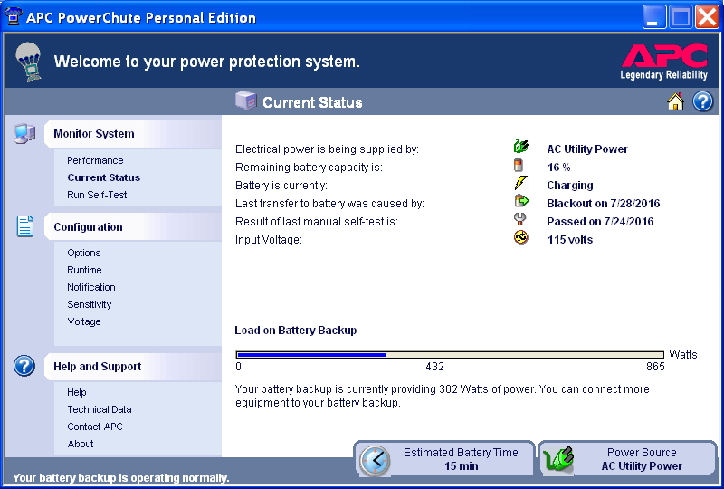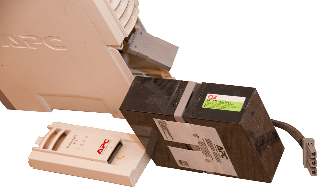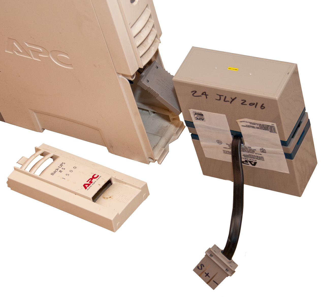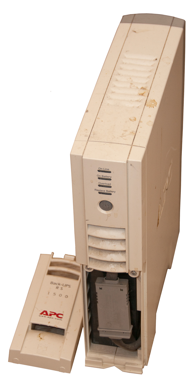 shown on the left side doubles the backup time. The Unit on the right has a USB connection to the computer and the PC is running PowerChute software which can be programmed to shutdown the computer after some time interval. Of course if you're within a room or two of the UPS and hear the power fail beeping you can come and shut down the computer in the normal way. Oct 2010 - the problem is that even though the computer has been shut down the Peripherals are still running. The fix is a "smart outlet strip". Now if the weather station is on the UPS it will have a very long run time. This is important for power outages that last many hours. |