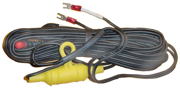 Collins DC Power cord with spade lugs one end and the special PLGR screw lock connector on the other end. Only one line fused. I don't know which lead is fused. If it's in the hot (+) lead there's a possible problem connecting the two leads to the "hot" 12 Volt battery in a 24 volt system then connecting something grounded to any ground point on the PLGR. This lets the smoke out of the PLGR!