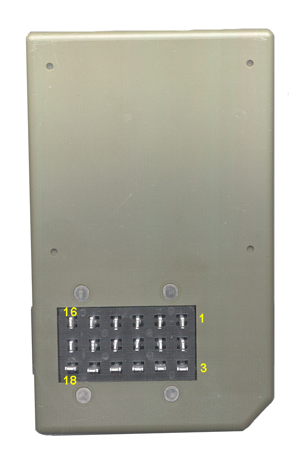 * *Based on documents by Trevor Barron. My pin numbers are based on those that are part of a Cinch Jones plug. My #1 is his #18, my 3 is his 6, my 16 is his 13 and my 18 is his 1. With my pin numbers you can see that the functions are grouped in a logical way. Neither the commercial manual for the BTC-UN108 nor TM 11-6130-489-13&P has any more info. The only diagram in either manual is a block diagram where the interconnecting wires are not labeled by function, only numbered.