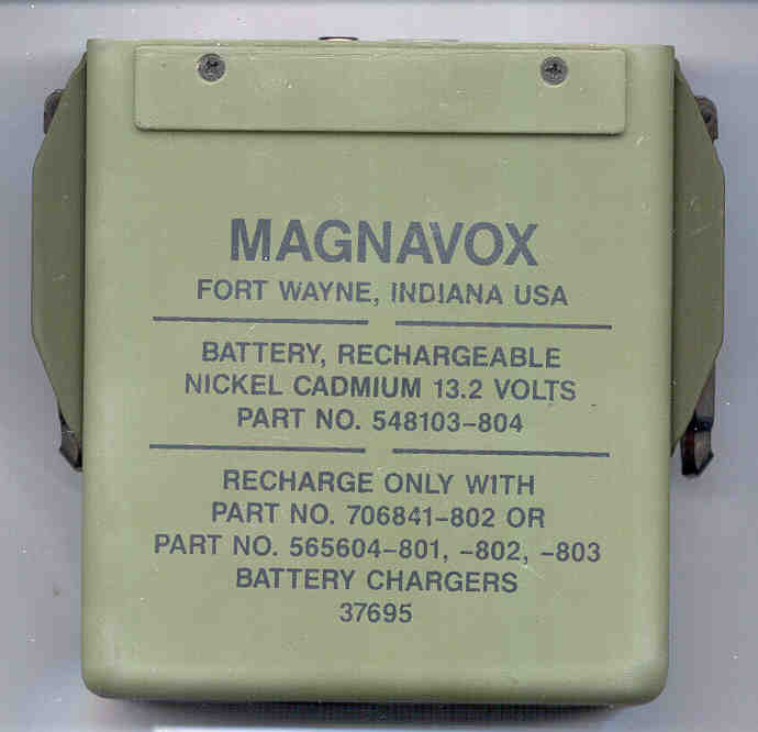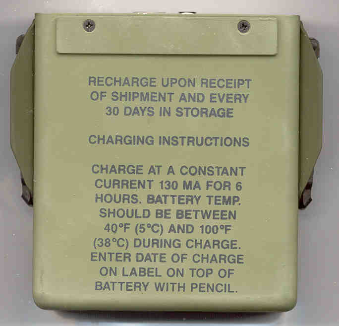 There is a special battery for the PRC-128 that has charging contacts on the bottom so that it can be charging while the radio is mounted in the OF-185 vehicular adapter. If this battery is used with any of the other squad radios, it will also be charged in the OF-185.