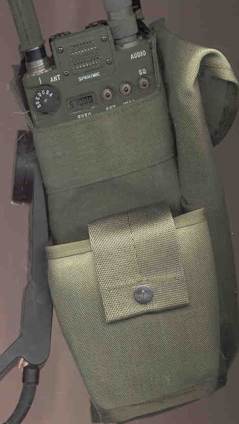 Because of it's size the PRC-128 will not fit into a shirt or pants pocket (maybe a battle fatigue pants pocket). Your choices are hold it in your hand all the time, OK for some uses, or use the carry bag connected to a military pistol belt and use the H-250 handset, or in quiet locations where you can hear the built in speaker, the M-80 Microphone.3.2 Controls, Indicators and Connectors