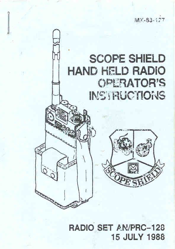 The AN/PRC-128 is a short range, handheld tactical radio for use primarily by Air Force guards and special operations teams. It was not intended for Army combat use. AN/PRC-128 is a lightweight, militarized transceiver providing two-way, voice-communications. The radio covers the frequency range of 30-87.975 megahertz or 130 - 173.9875 Mhz depending on which RF module is installed. Its nominal range for reliable communications over rolling, slightly wooded terrain is 3,000 meters. The radio is capable of interoperating with the AN/VRC-12, AN/PRC-77, and SINCGARS families of radios in the VHF Low band fixed frequency mode. AN/PRC-128 enables small unit leaders to adequately control the activities of subordinate elements in carrying out the unit's mission. AN/PRC-128 is a part of the Scope Shield Program with the following major components: