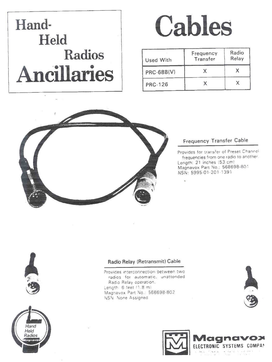 Magnavox presales sheet for Ancillaries showing the cloning and repeater (retransmission) calbes with no bumps, just cables.