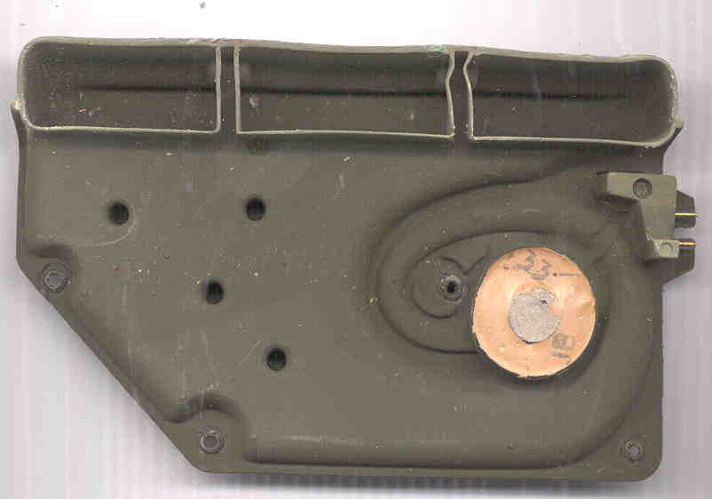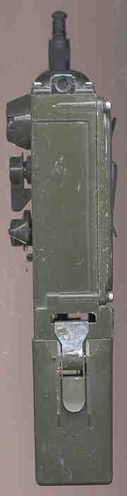 The method of battery attachment is simpler than that used on the PRC-68 series. It has the battery exposed to the elements but the PRC-68 series has the battery sealed from the elements. You can see daylight through the side when there is no battery installed. The bottom of the battery box is also open.