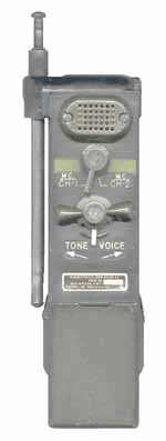 Is designed to hook on a belt and be hand held during operation. The "A" variation adds a 150 Hz tone to be compatible with other VHF low band radios in the 47 to 57 MHz frequency range.