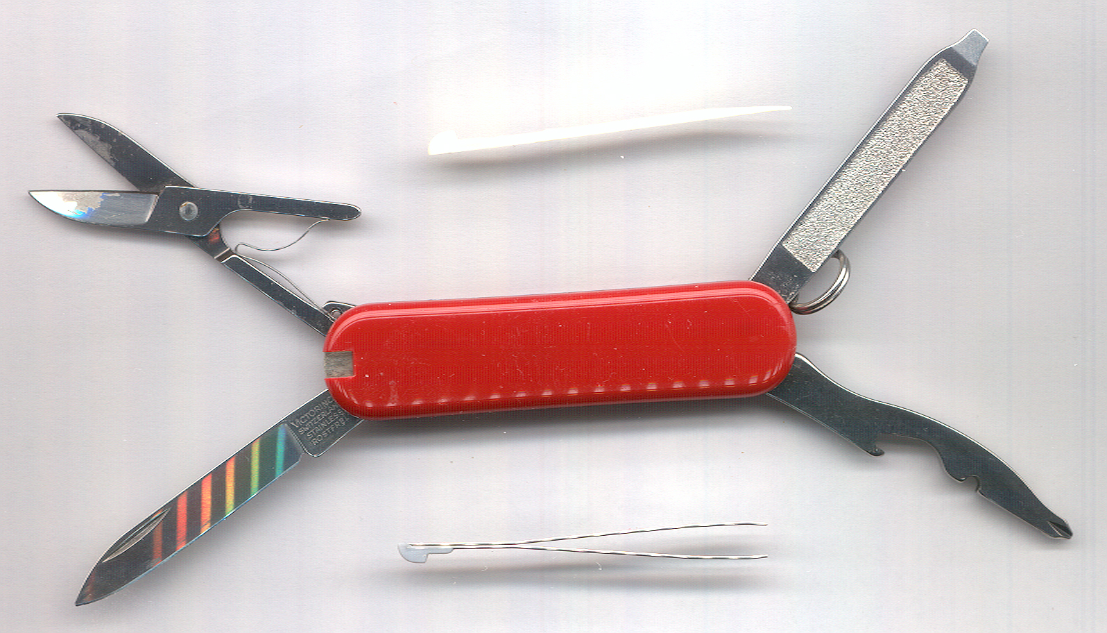 Although I own a number of multipurpose tools, I carry theClassicRambler Swiss army knife. It is very versatile and has been used for all kinds of useful tasks. Although many of the tools on this page will fit into your pants pocket they are much too heavy to carry all the time. TheClassicRambler Swiss army knife has an attachment point for a key ring and is light enough to actually carry.