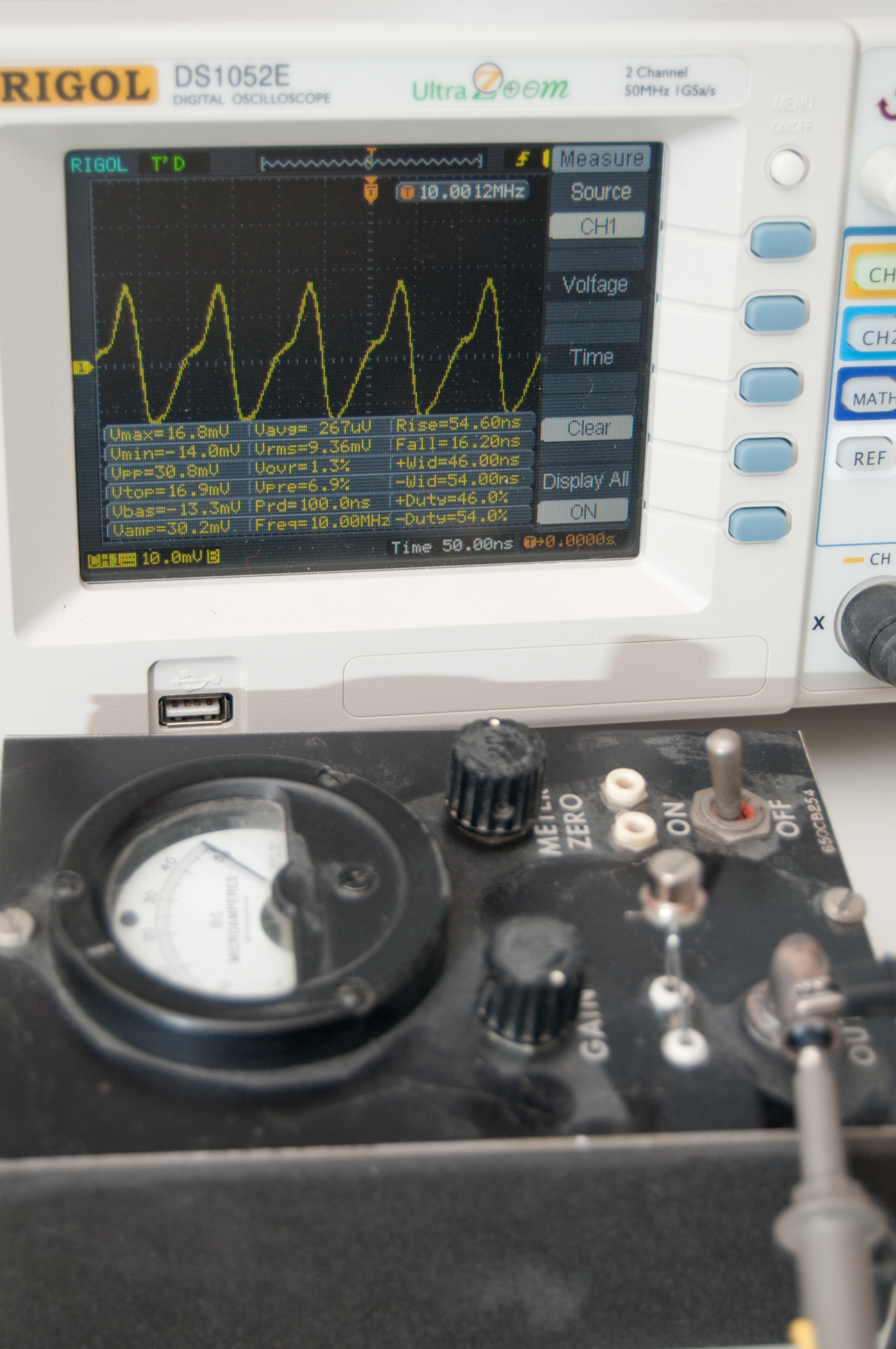 Fig 4 SGA PCB![]() The problem is with the xtal oscillator. It's powered by the -12.4 DC rail and when the voltage is between 12.5 and 14 there's an oscillation around 500 kHz, far from the expected 10 Mhz. Maybe the McCoy crystal is bad. Need to check my parts bin. ------------------------- The McCoy 10 MHz crystal in the Crystal Activity Meter shows good operation at 10.00 MHz. ![]() |