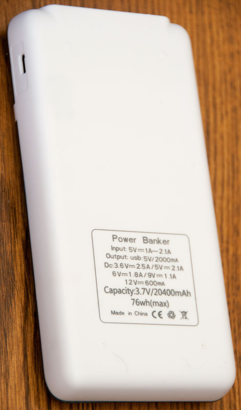 This is the newest and best power bank I've got. It works well with low current loads, like the GoPro video camera or the WSPRlite radio beacon, both of which have very low standby current drain.