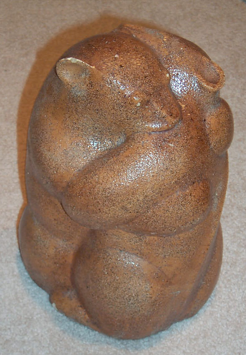 There were versions with a smooth finish and others with sand under the glaze to be more like hair. I was worried that these would break and be lost so commissioned a Bay Area artist to duplicate them in bronze. One for myself and my two brothers and a couple of friends also wanted one. I still have the molds for these. I first tried to have a casting business do this but they could not figure how to place the part lines. My father made a paper template, but it was too much for them. The artist used a lost wax process that does not need to save it's mold.