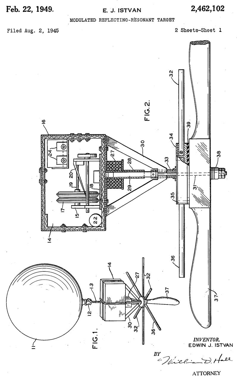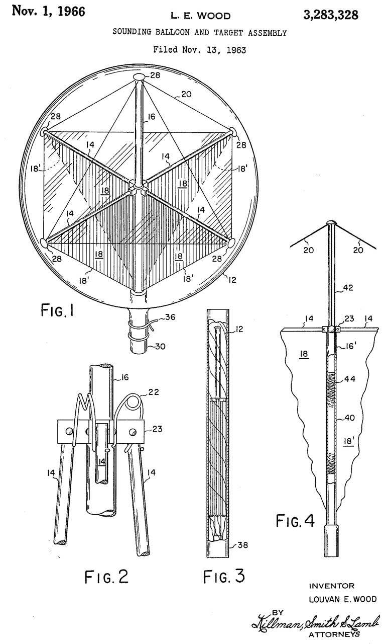 2463517 Airborne Corner Reflector, L. Chromak, App: 1945-06-30, W.W.II, Pub: 1949-03-08, 342/8 244/24 52/DIG.10 446/220 52/2.26 244/31 - inside balloon