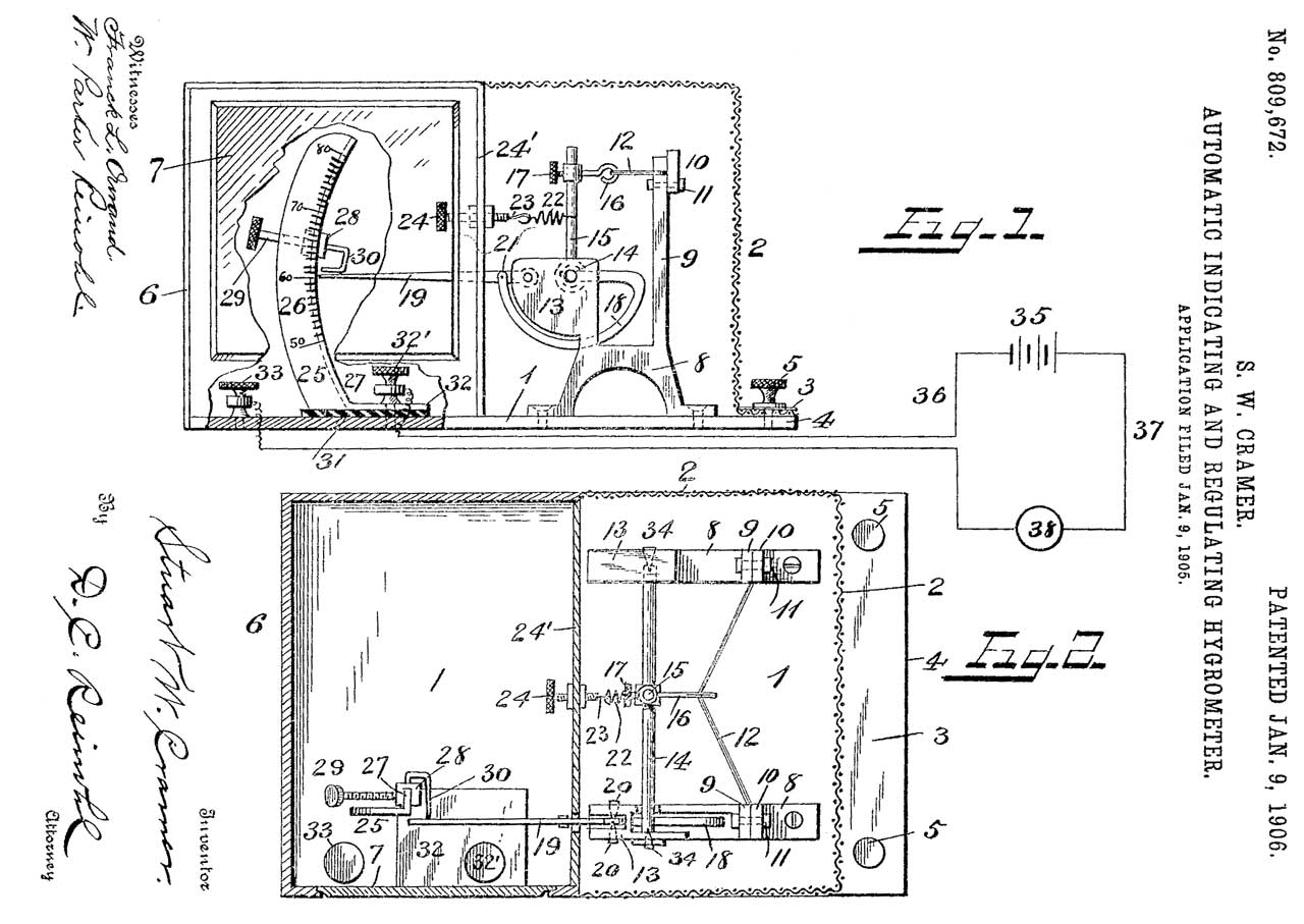 The idea here is to have meter faces all in the same plane and a contact driven by a clockwork, say once per minute. Then the clock dial can be divided up, for example: 0 to 15 seconds the temperature, 16 to 30 seconds the humidity and 31 to 59 seconds the barometric pressure. With a reference signal at the top of the minute. This is an unambiguous readout, but the clockwork motors are mechanical and so not as reliable as more modern electronic methods.