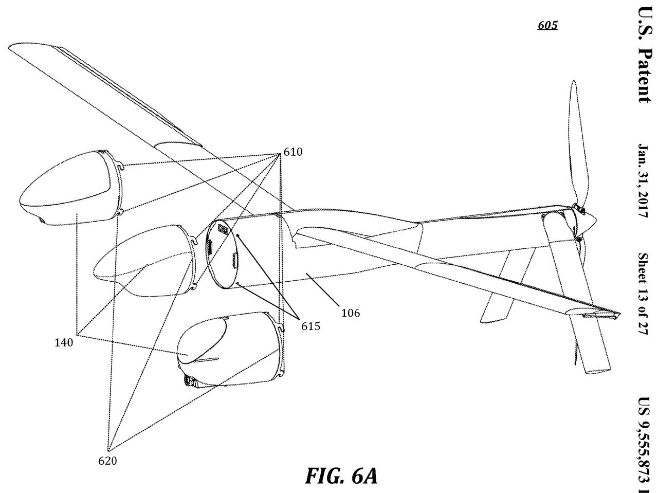 9545991 Aerial vehicle with deployable components, Nicholas Robert Alley, Joshua Lemming Steele, Jesse Owen Williams, Daniel Kuehme, Jonathan Caleb Phillips, AREA I Inc (Anduril Ind),2017-01-17, - looks like patent 9555873?