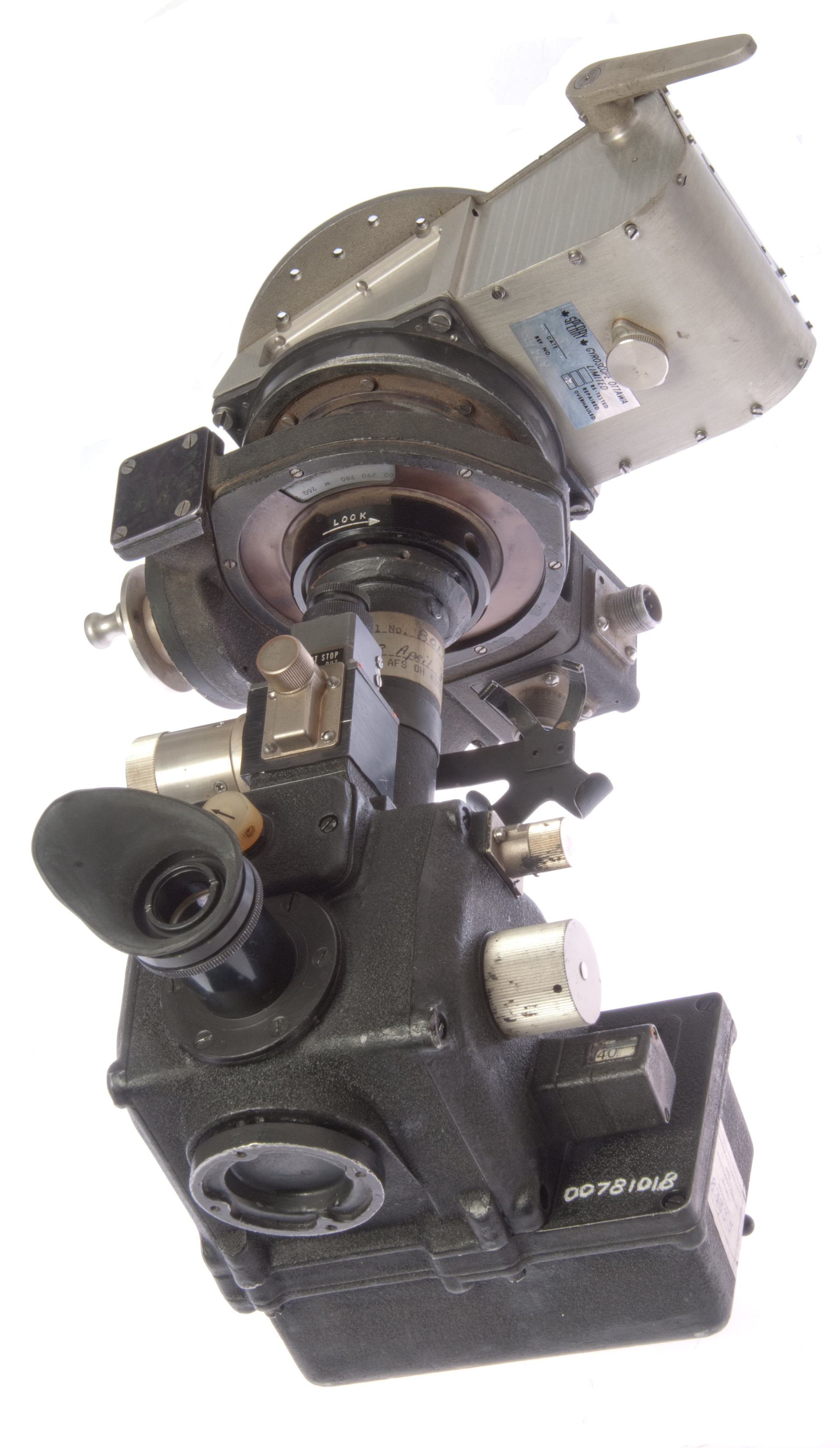 3.3.1 Sextant. Hereinafter, the term "sextant" shall be construed to mean the sextant proper, Periscopic tube, connecting cable, and watch clip. The sextant shall be a bubble-type sextant built in the form of a periscopic telescope with the periscope projecting above the skin of the aircraft. Provision shall be made for 360 degree rotation of the instrument around the vertical axis and tilt of the sextant up to 14-1/2 degrees minimum from the vertical axis. The sextant shall conform essentially to Standard MS28011.MS28011(AS) consists of three drawings:A.F. Manual 51-40 Air Navigation has a little information on this sextant. Vol 1 has descriptive info and Vol 3 operational info