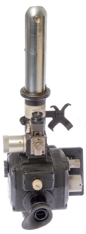 When the Start lever is pressed the averaging mechanism begins and the shutter in the line of sight is moved to clear the optical path. The elevation knob is adjusted to keep the star in the cross hair and the sextant is held so as to keep the bubble centered.