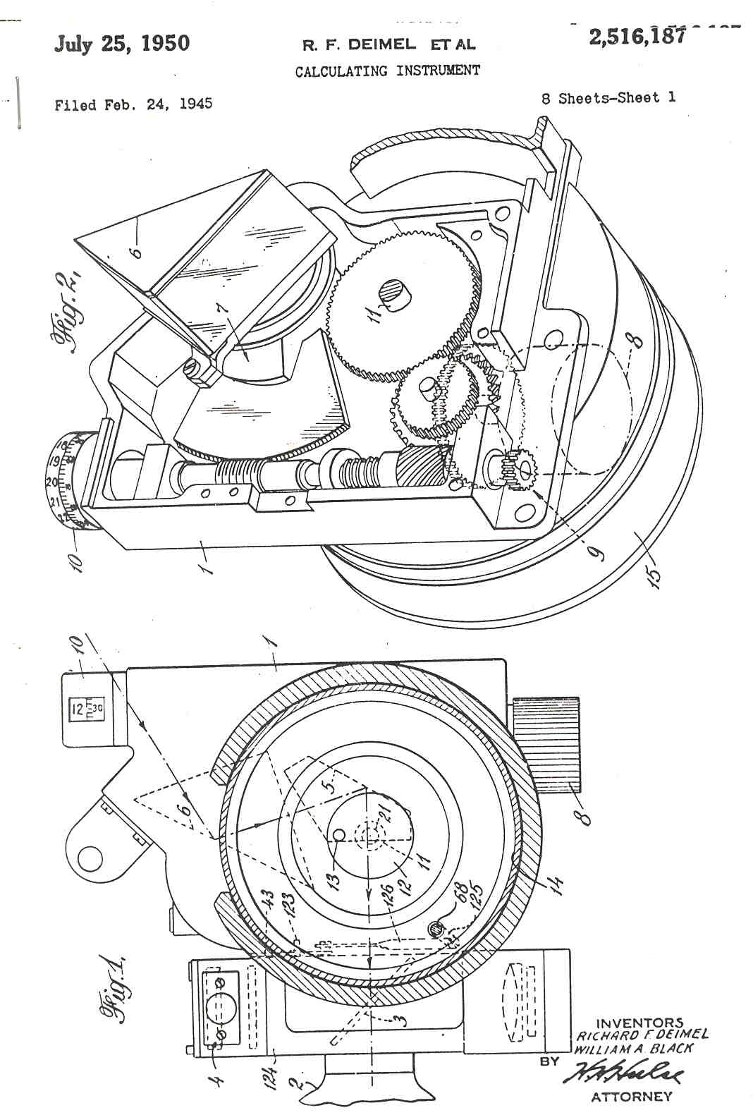 2516187 Calculating instrument, Deimel Richard Francis, Black William Alexander, General Time Corp, App: 1945-02-24, Secret, Pub: 1950-07-25, -