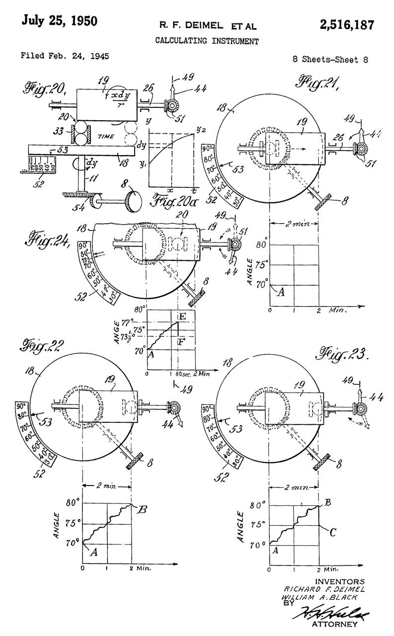2516187 Calculating instrument, Deimel Richard Francis, Black William Alexander, General Time Corp, 1950-07-25, - see Averager Patents above; Note 118: