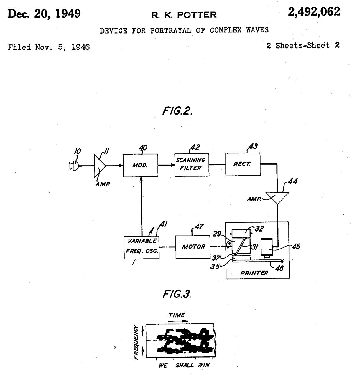 2368953 Electric control system, Walsh Philip John, App: 1940-08-26, Pub: 1945-02-06, - includes relays operated by narrow band audio filters cited by 41 patents.