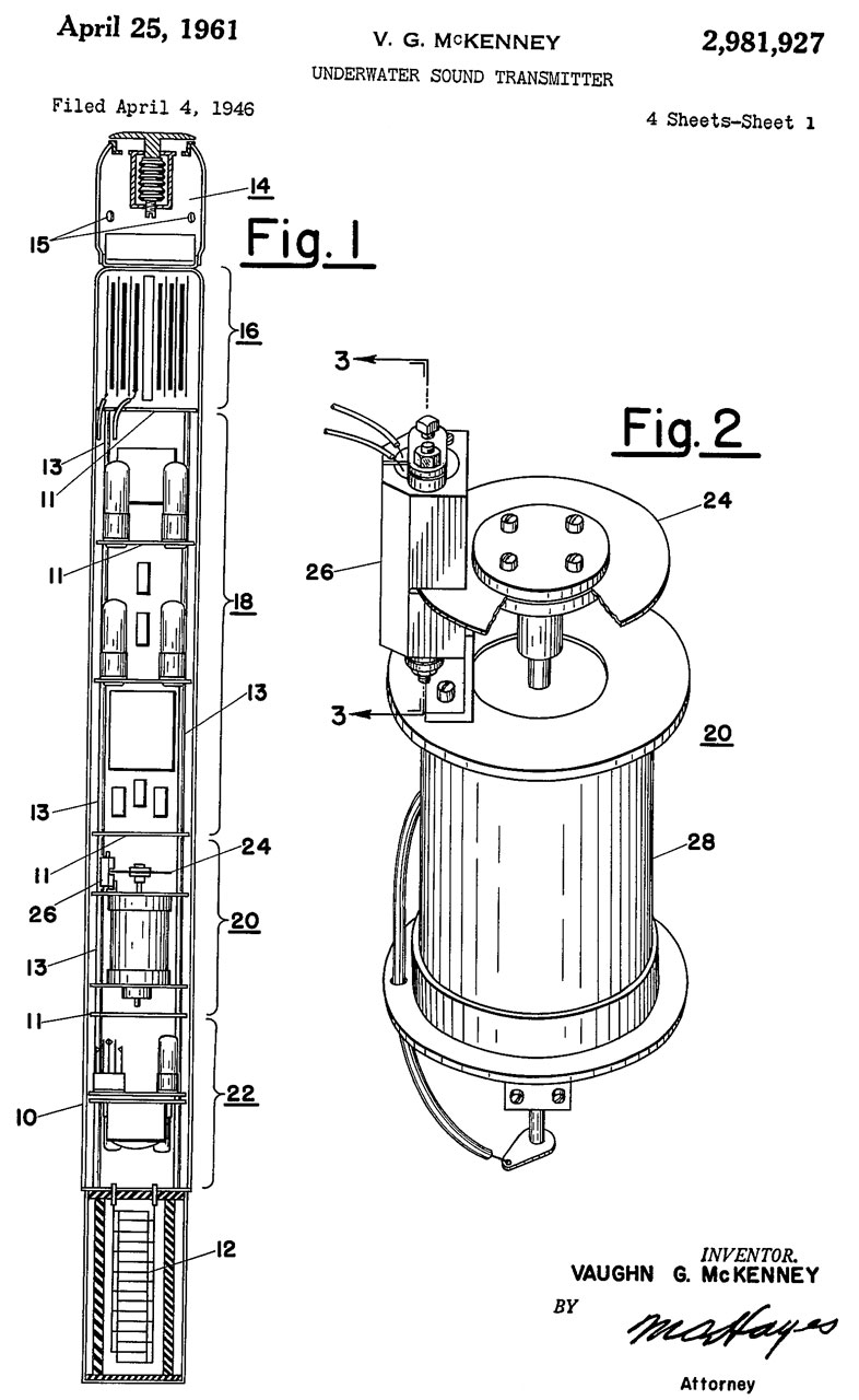 3724374 Underwater sound source, Navy, 1962-04-27 - used with active sonobuoy, not as signal to friendly sub