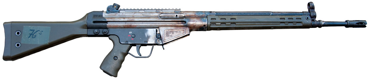 FN FAL ".308 Match" Rifle, AR15/M16/M4 parts table with optical sights, Ballistics info.