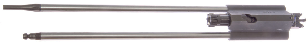 2951424 Gas operated bolt and carrier system, Eugene M Stoner, Fairchild Engine and Airplane Corp (Wiki: ArmaLite), App: 1956-08-14, Pub: 1960-09-06, - "It is an object of this invention to provide a gas system which is lighter and less expensive to produce because of its simplicity than the present gas systems now used in automatic rifle mechanisms." "A further object of this invention is to provide smoother operation and longer life of the working parts of the automatic rifle mechanism. Since, in this invention, the actuating force is transmitted directly down the center line of the barrel and the bolt mechanism to the shoulder of the shooter, all of the off center loads found in most other types of gas actuated weapons are eliminated."
