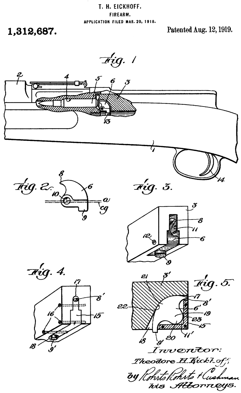 3045555 Automatic trigger mechanism with three sears and a rotatable control member, Eugene M Stoner, Fairchild Engine and Airplane Corp (Wiki: ArmaLite), App: 1959-12-22, Pub: 1962-07-24, -