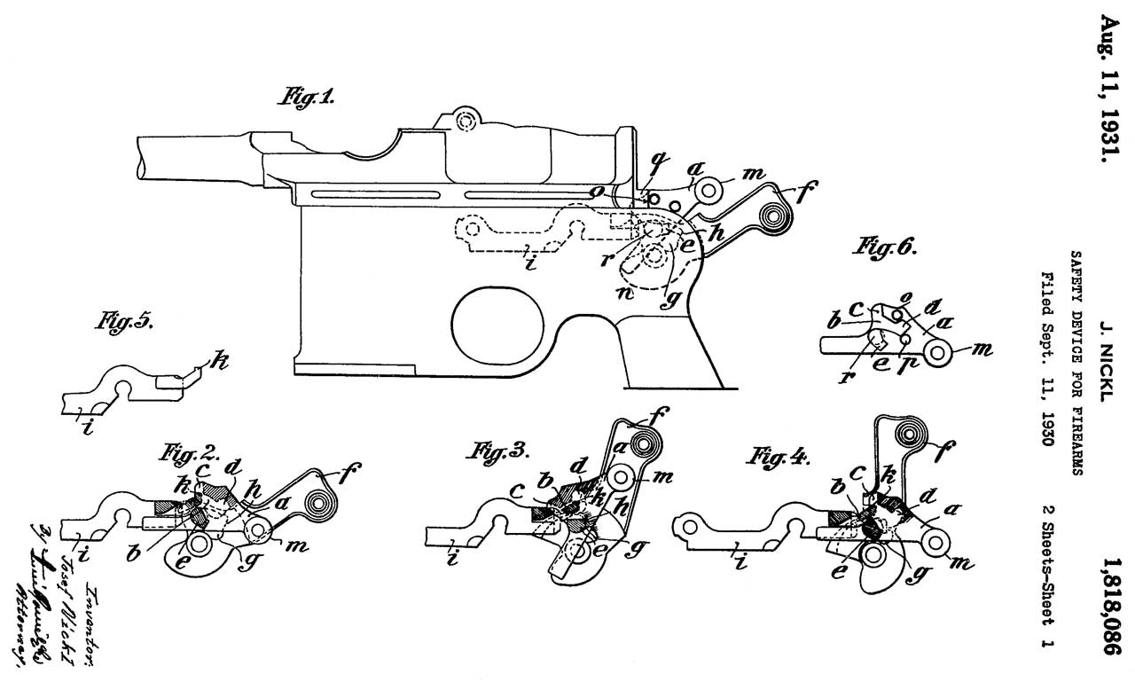 7096618 Pistol with magazine disconnect, James McGarry, Sturm Ruger and Co, 2006-08-29, - can not fire when magazine has been removed - Done to comply with CA law that no longer is in force, along with loaded chamber indicator and microstamping.