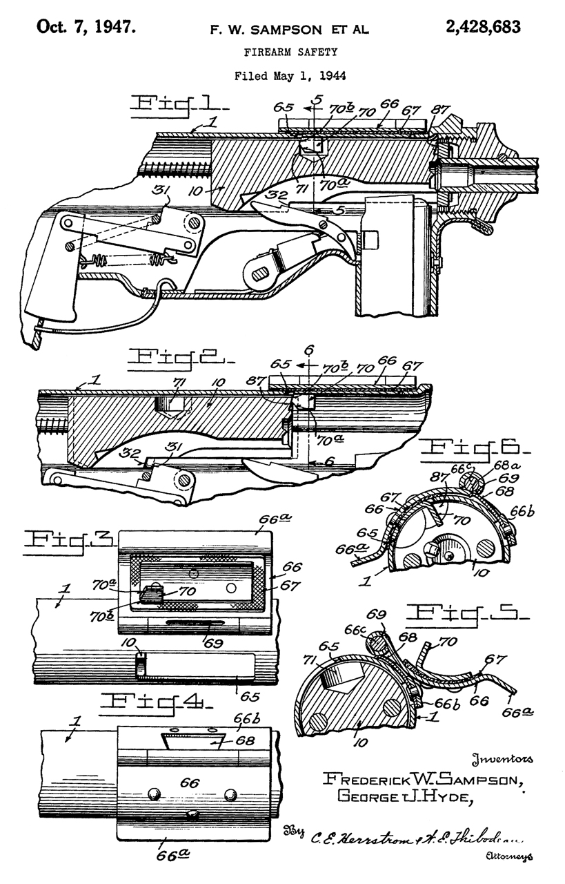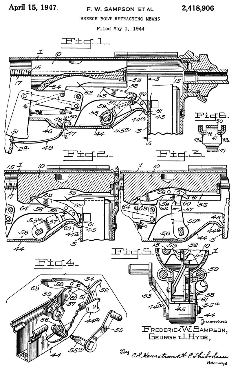 2365307 Self-loading repeating firearm, Carl G Swebilius, High Standard Mfg, 1944-12-19, - UD M42