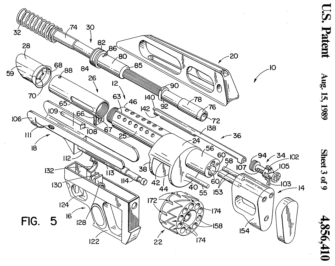 4335643 Semi-automatic firearms, Uzi Gal, Action Mfg Co, 1982-06-22, - Sturm Ruger, Wiki: MP-9 closed breach version of original open breach submachine gun.;