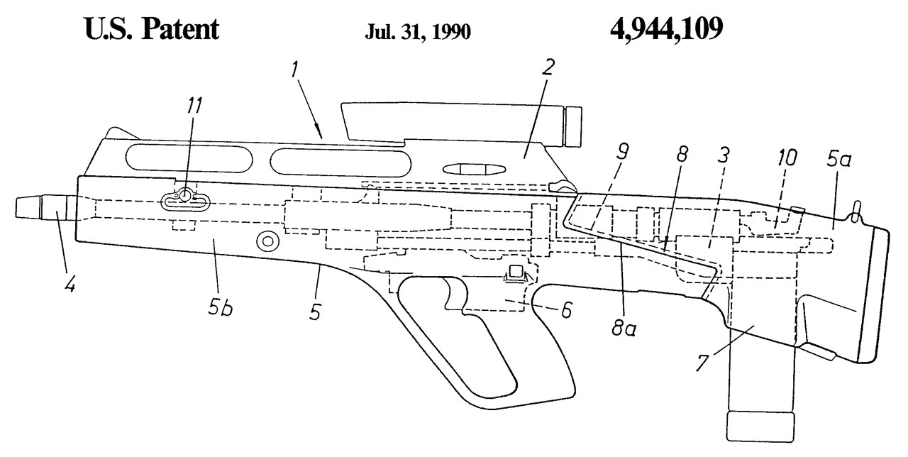 4916844 Hand-held firearm, Ulrich Zedrosser, Steyr-Daimler-Puch Ag, Apr 17, 1990, 42/75.02, 42/70.02 - bull pup