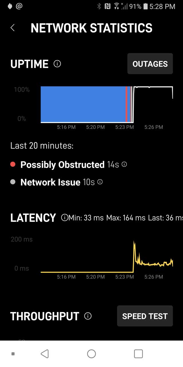 2024Jan03- while the.nx simulator shows very high latency, the Starlink app is showing 77/23 ms.