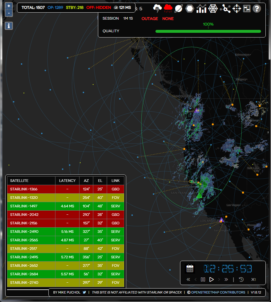 | Note Starlink dish pointing