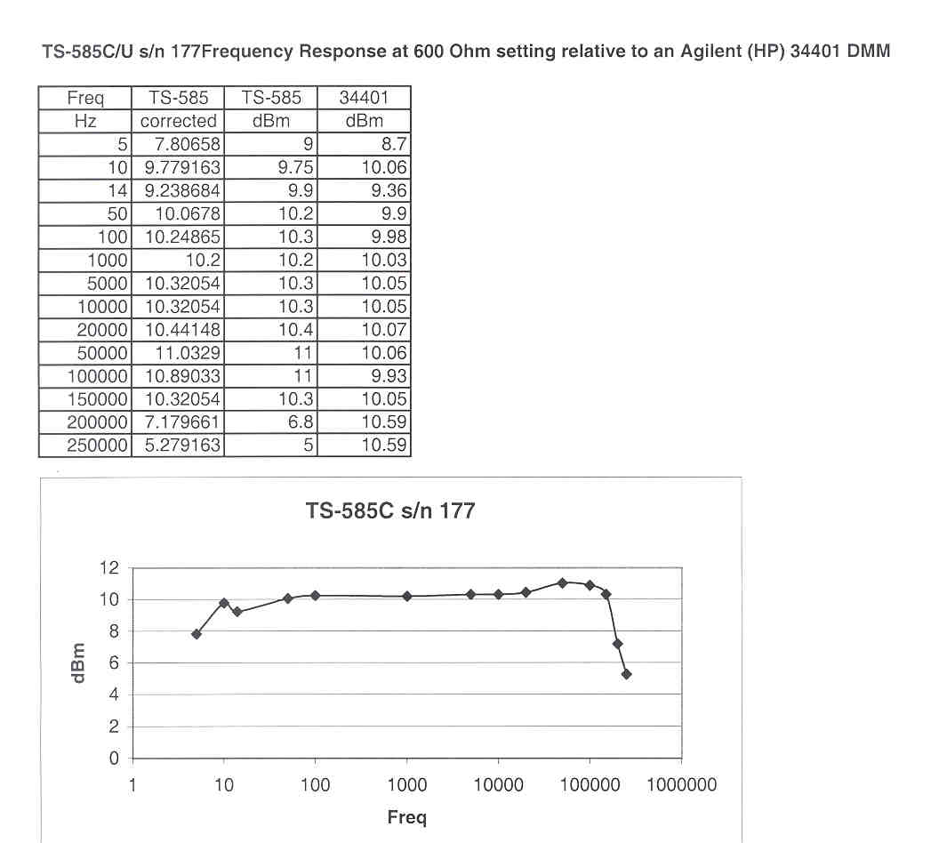 It also could be used to determine the impedance of an audio load such as headphones by using the input impedance in series with the load and looking for 1/2 the voltage across the TS-585 and 1/2 across the load.