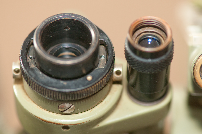 The T16 is similar to the regular Tn series theodolites, but is "direct reading". By that I mean that the T16 units do not have the micrometer as described in patent 1508585 (See above). This means they do not have the micrometer knob and after setting the angle using the fine adjustment you just look at the scale and read the horizontal and vertical angles directly.