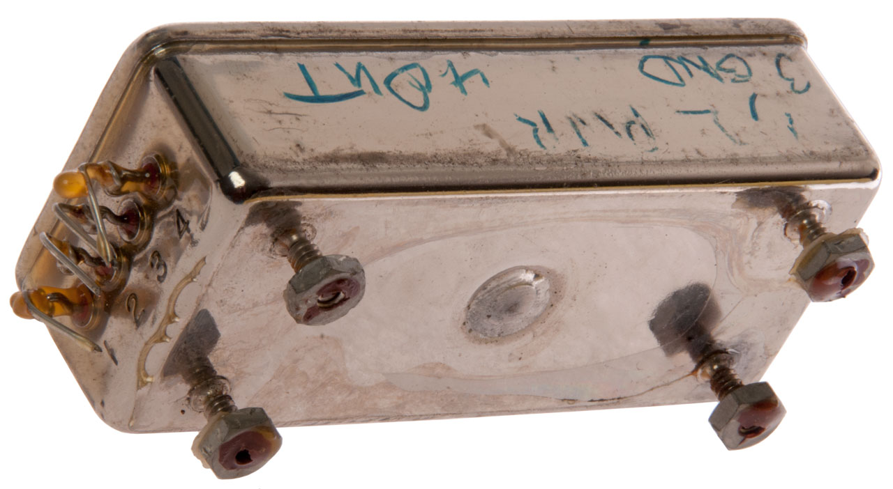 This is a hermetically sealed 60 Hz frequency standard based on a tuning fork design.