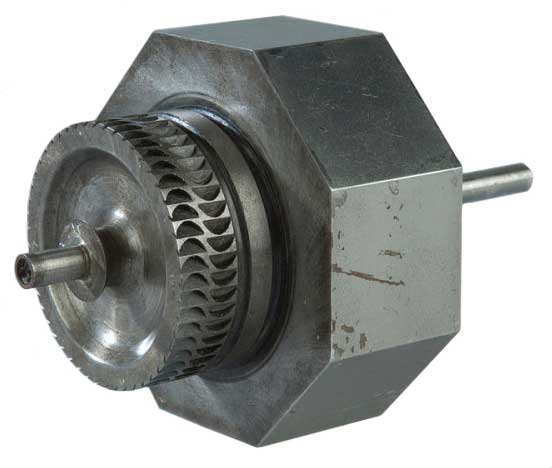 Note there is a slit in each vane and the pair of vanes act as a shutter to provide a stroboscopic effect when looking at gear wheels.