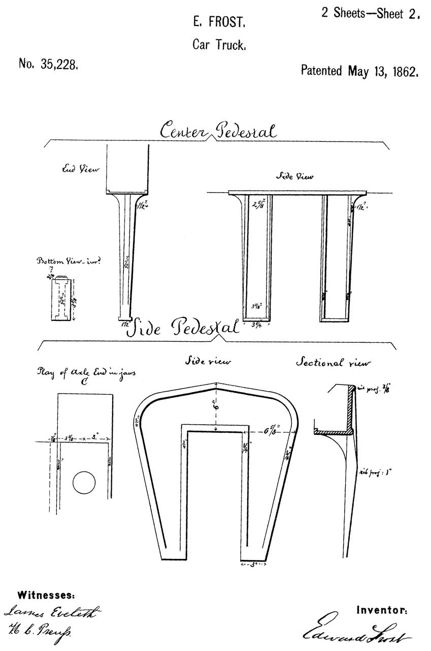 35228 Improvement in car-trucks, Edward Frost, 1862-05-13, - conical shape to wheel &...