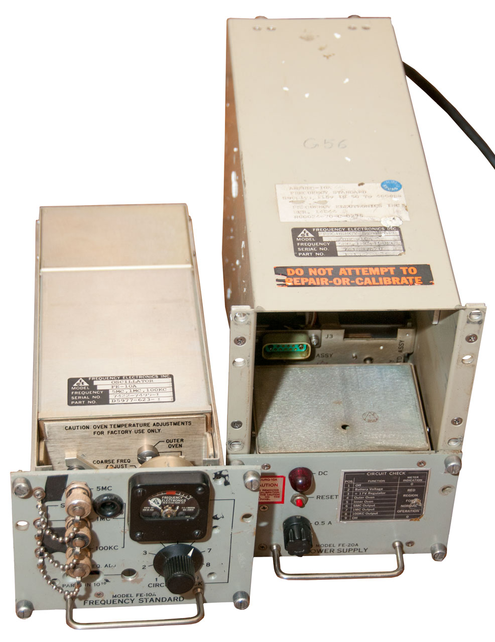 Part of my interest in Time and Frequency. This is a US Navy Crystal Frequency Standard. It was made by FEI (Wiki, Official web page). The official web pages links to ThermoFisher. At one time FEI purchased Aertech Industries (TRW Microwave) where I was working.