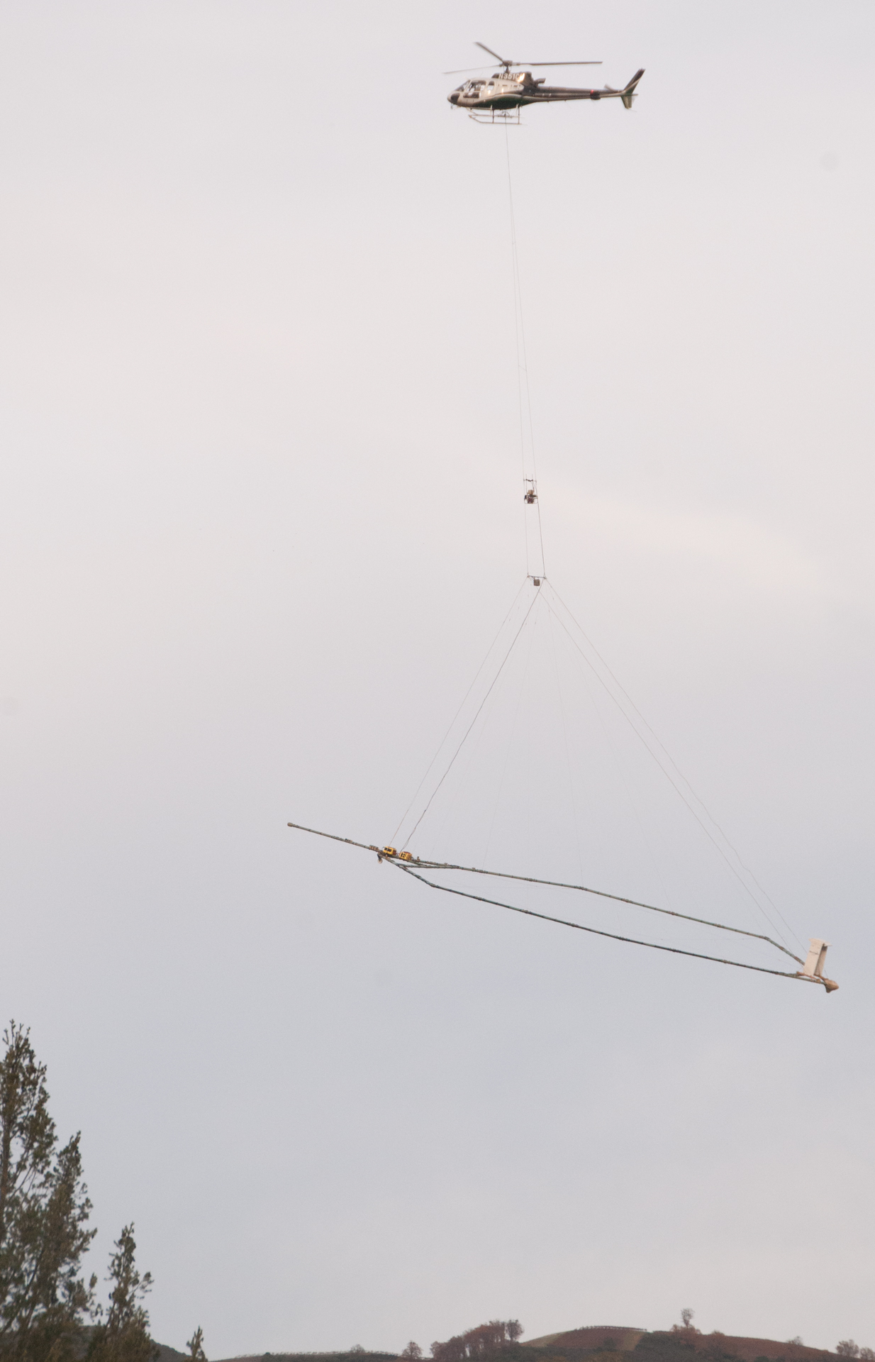 The there is an inlet off of the Russian River where soil setteles out. In the past they used an excavator to remove the dirt so that it could be trucked away, now they have a tower machine with an engine at it's base.