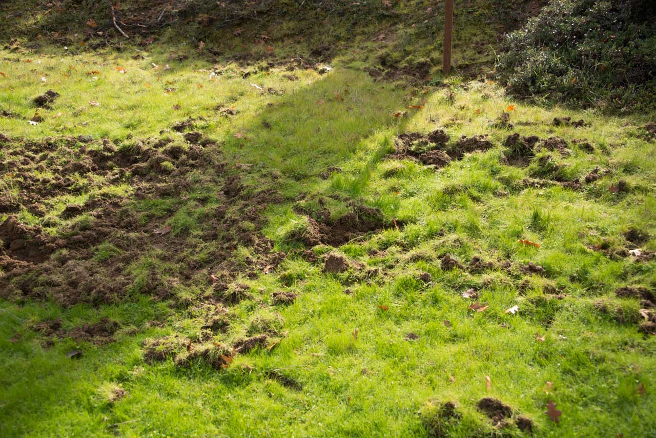 Katie, who used to live in the French Alps says pigs may be the cause. I've since heard that there are wild pigs here, but this is the first time I've seen this.