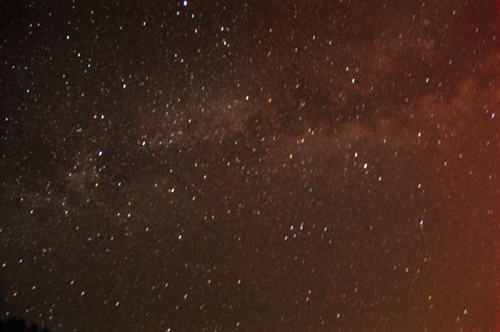 the milk in the Milky Way About a 1 second exposure in Nikon D300. This is close to what you actually see, except your eye doesn't see the red. ![]() |