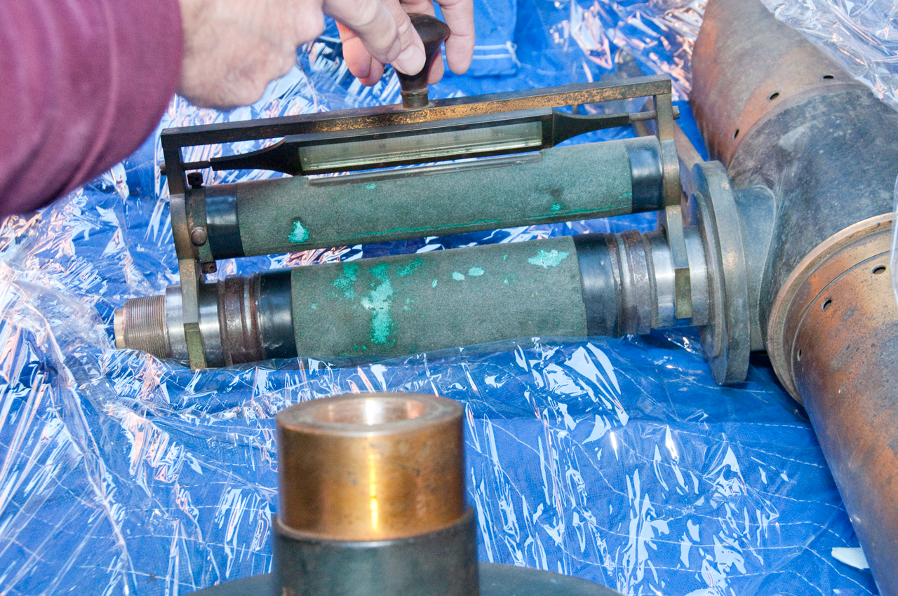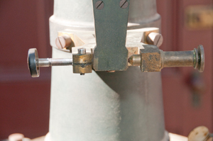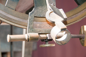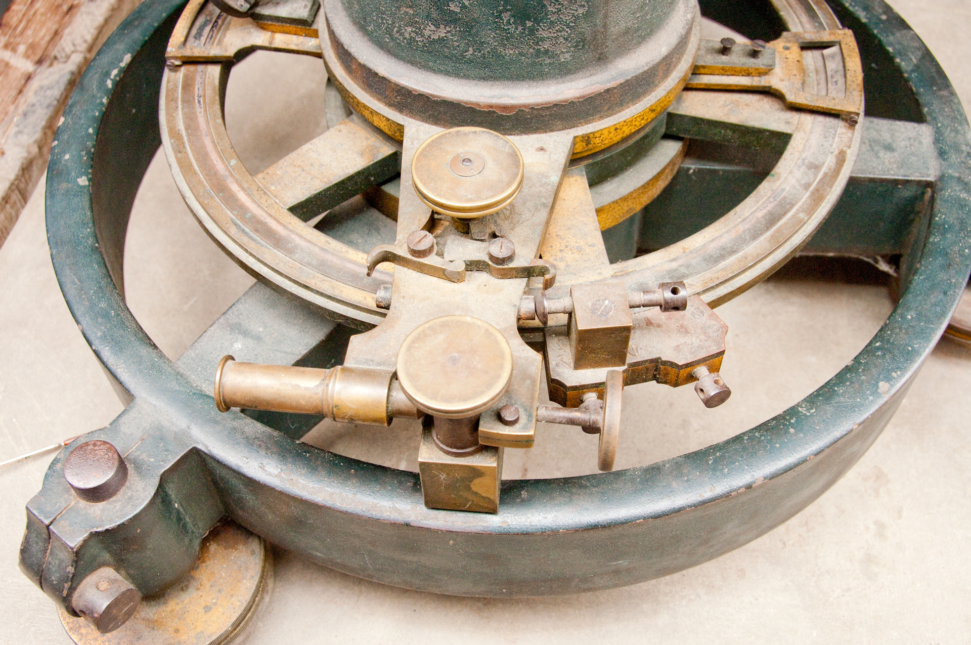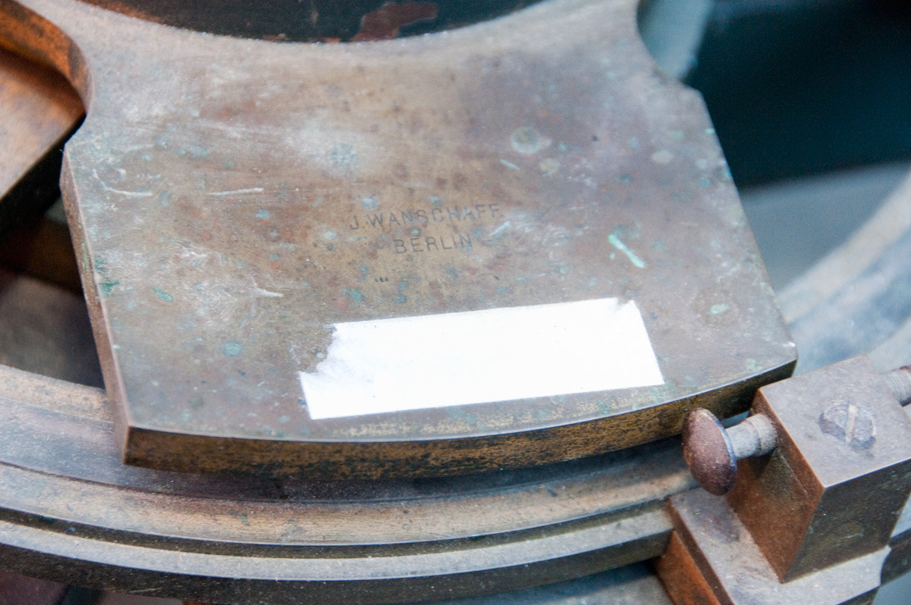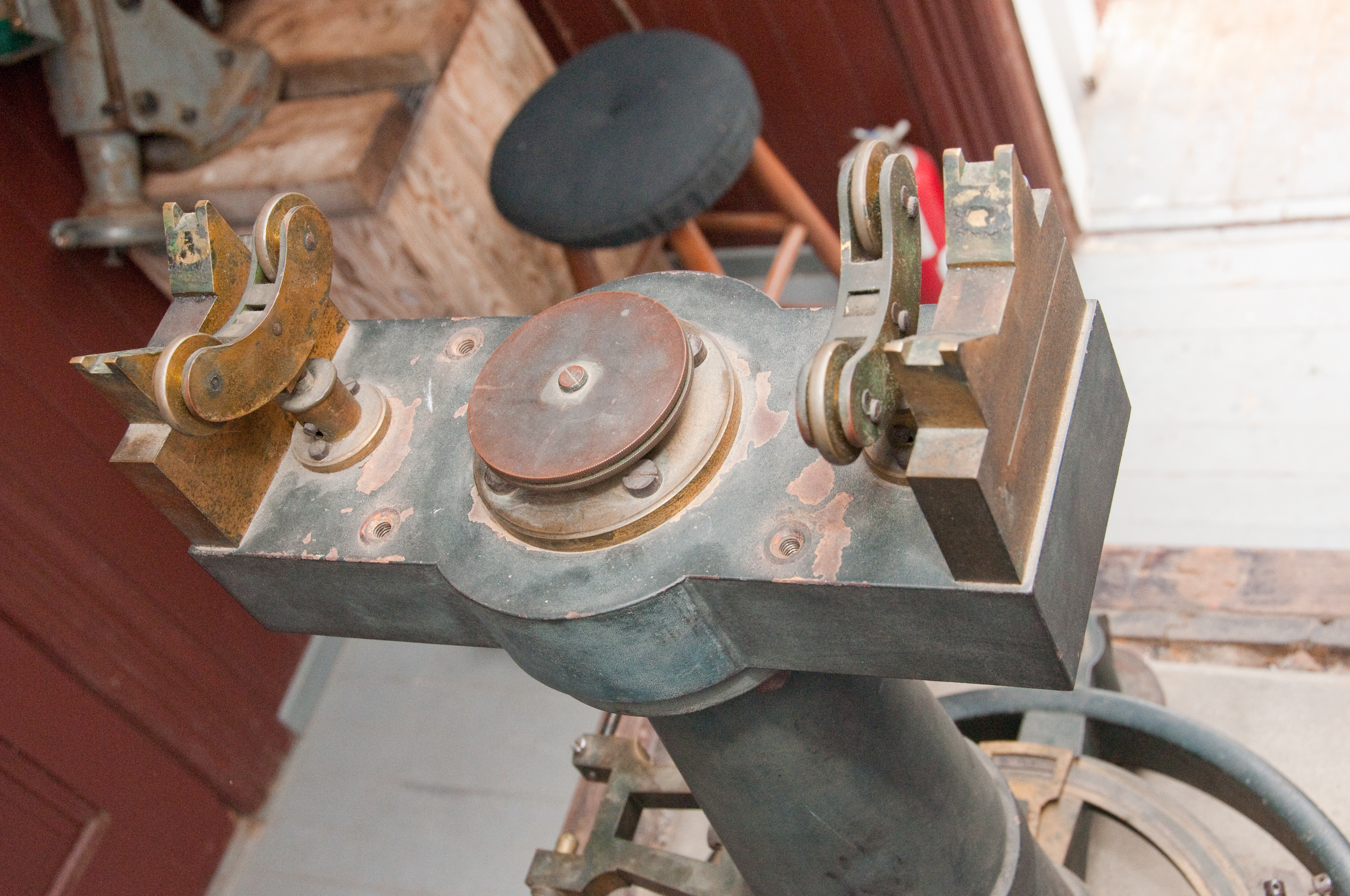 right in this photo The microscope to read the vernier scale (Wiki) is missing. Blue shrink wrapped package in background is the sidereal pendulum clock. Not unwrapped yet, will be in interpretive building. ![]() |