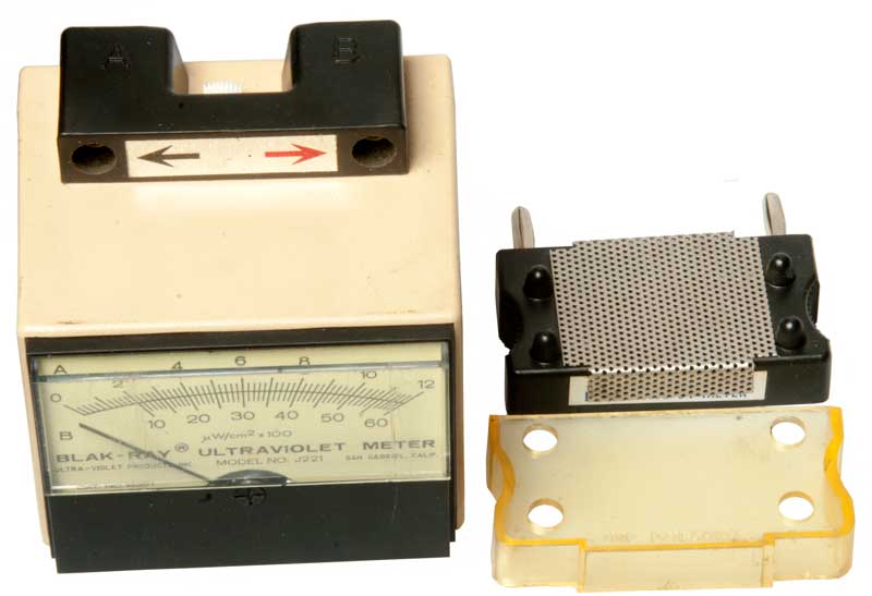 J-221 long wave (300 to 400 nm) meter: 0 to 12 & 10 to 60 uW/cm^2 - typically used for blacklights (Wiki).