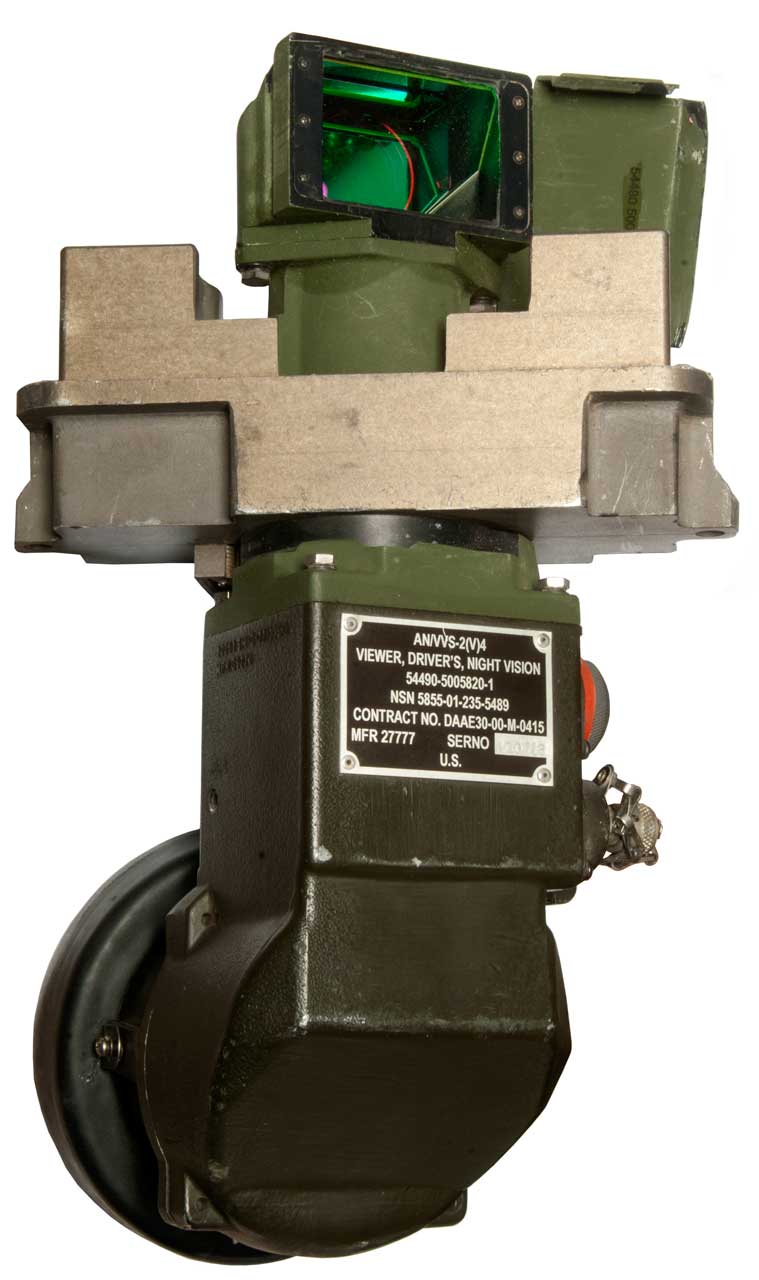 "The VVS-2(V) is a night viewing device designed for armored-vehicle drivers. Typical platform configurations include the M1A2 Abrams, V-150, LAV25 Piranha, M113, M60A3, M48, Armored Infantry Fighting Vehicle, M109 Howitzer, T54, PT76, and Fox NBCRS.