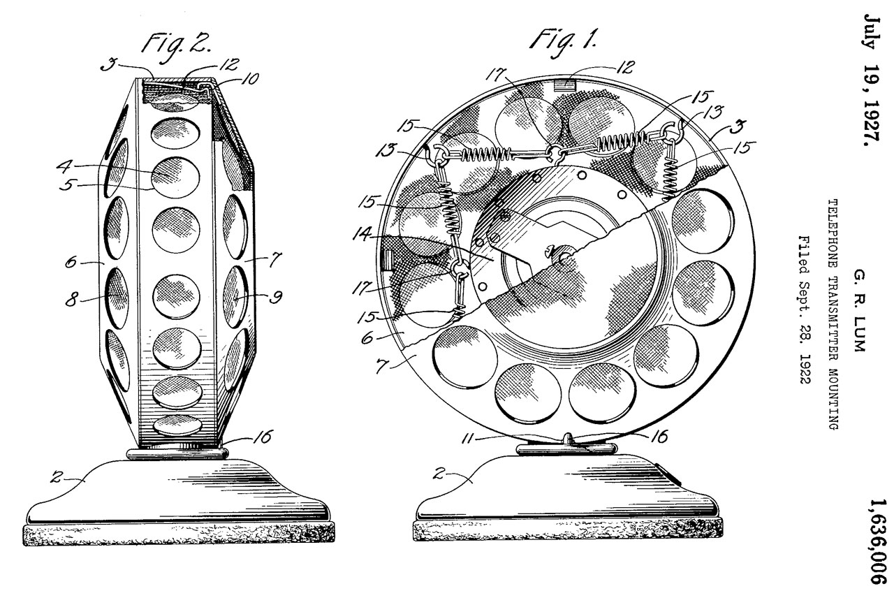 1636006 Telephone transmitter mounting, George Lum, Western Electric, 1927-07-19 -"1A" stand