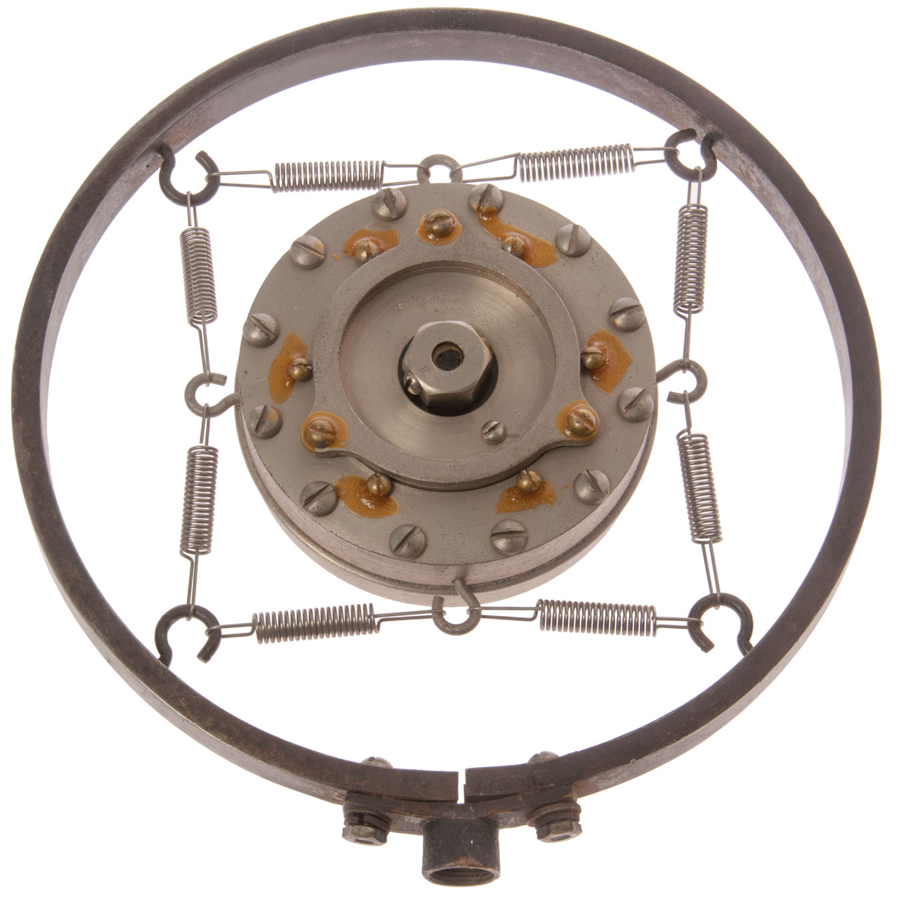 I believe these very heavy microphones were intended for use in movie studios, not for telephones. The spring mount in a disk shape was needed to isolate them from conducted noise. The reason for the heavy construction was to allow tightly clamping the aluminum diaphragm and then "tuning" by using separate screws to tension the diaphragm. This gave better frequency response and so these were desirable for project Mogul (Wiki).